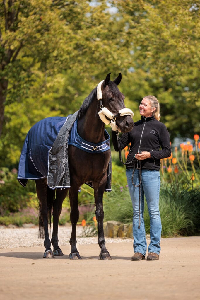 Hoi! Ik ben Monique, misschien ken je me al, misschien ook niet. Maar ik wil je graag iets meer over mezelf vertellen. Al 35 jaar ben ik actief in de paardenwereld. Als klein meisje wilde ik al niks lievers: naar de paarden. In mijn jonge jaren ben ik fanatiek spring ruiter geweest maar ik heb mijn passie gevonden in de dressuursport. Door de jaren heen heb ik met veel verschillende soorten en maten paarden gewerkt en allerlei dekens geprobeerd. Helaas liep ik continue tegen het zelfde probleem aan: Mijn paarden kregen schuurplekken op de schouders en dekens lagen eigenlijk gewoon nooit goed. Ook was het onhandig om dekens te wisselen als ze ’s winters in de stapmolen gingen, en met gewone dekens werd het getrek op de schouders alleen maar erger. Totdat ik een “geniale” ingeving kreeg: de Equi-M Combi-deken werd geboren.